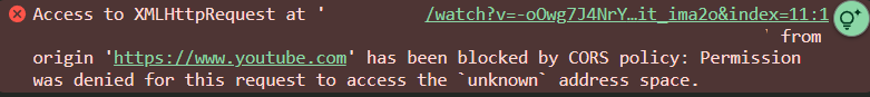 この記事を作った動機 最近適当に自分で作って使っていたChrome拡張機能がyoutube上で動作していないことが分かった。それで、調べてみると、CORSに引っかかっていた。そのことについて、さらにどうしたらいいか探ると、思ってたのと違う原因だったのでそのことを記録したいと思ったところ。 最初は、バックエンドサーバ側のもともとCORSを通すようにしていた設定がいい加減すぎるのが良くないのかなと思っていたが、私の環境の場合、クライアント側(Google Chrome)に原因があった。 クライアントから許可を出す プライベートネットワークを介してのバックエンドへのアクセスは、Google Chrome の場合、明示的に許可を出さないと、以下のようなエラーで引っかかる。 Access to XMLHttpRequest at 'urlName' from origin 'https://www.youtube.com' has been blocked by CORS policy: Permission was denied for this request to access the `unknown` address space. 許可を出すには、以下のようにして設定項目を探す。すでにLocal network accessの項目がこの時点で見えている場合はそこから設定しても問題ない。 この時点で、Local network accessの項目が見えない場合は、Settingsに進み、以下のようになるよう設定する。 バックエンドの実装 簡易的な実装として PHP を使い以下のようにCORSに関する実装をしている。この実装と、上記の設定でとりあえず動くところまではできた。 // CORS setting header('Access-Control-Allow-Origin: *'); header('Access-Control-Allow-Methods: GET, POST, OPTIONS'); header("Access-Control-Allow-Headers: X-Requested-With"); header("Access-Control-Allow-Private-Network: true"); header("Access-Control-Allow-Credentials: true"); if ($_SERVER['REQUEST_METHOD'] === 'OPTIONS') { http_response_code(200); exit(); } 参考にしたサイトとか なんとなく CORS がわかる…はもう終わりにする。 #JavaScript - Qiita https://qiita.com/att55/items/2154a8aad8bf1409db2b (2025年11月4日) getting cors issue no matter what [433208907] - Chromium https://issues.chromium.org/issues/433208907 (2025年11月4日)