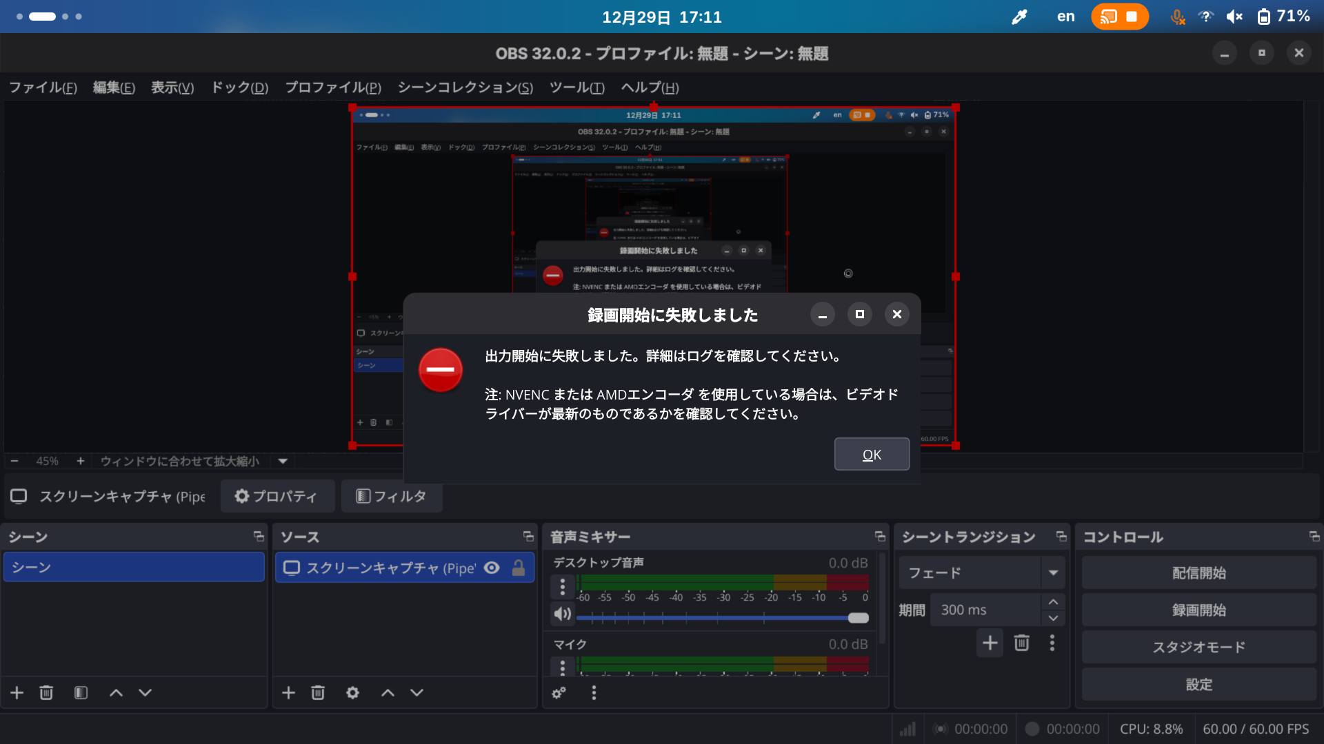 OBS Studio が Linux と Intel 5th CPU の組み合わせで動かない