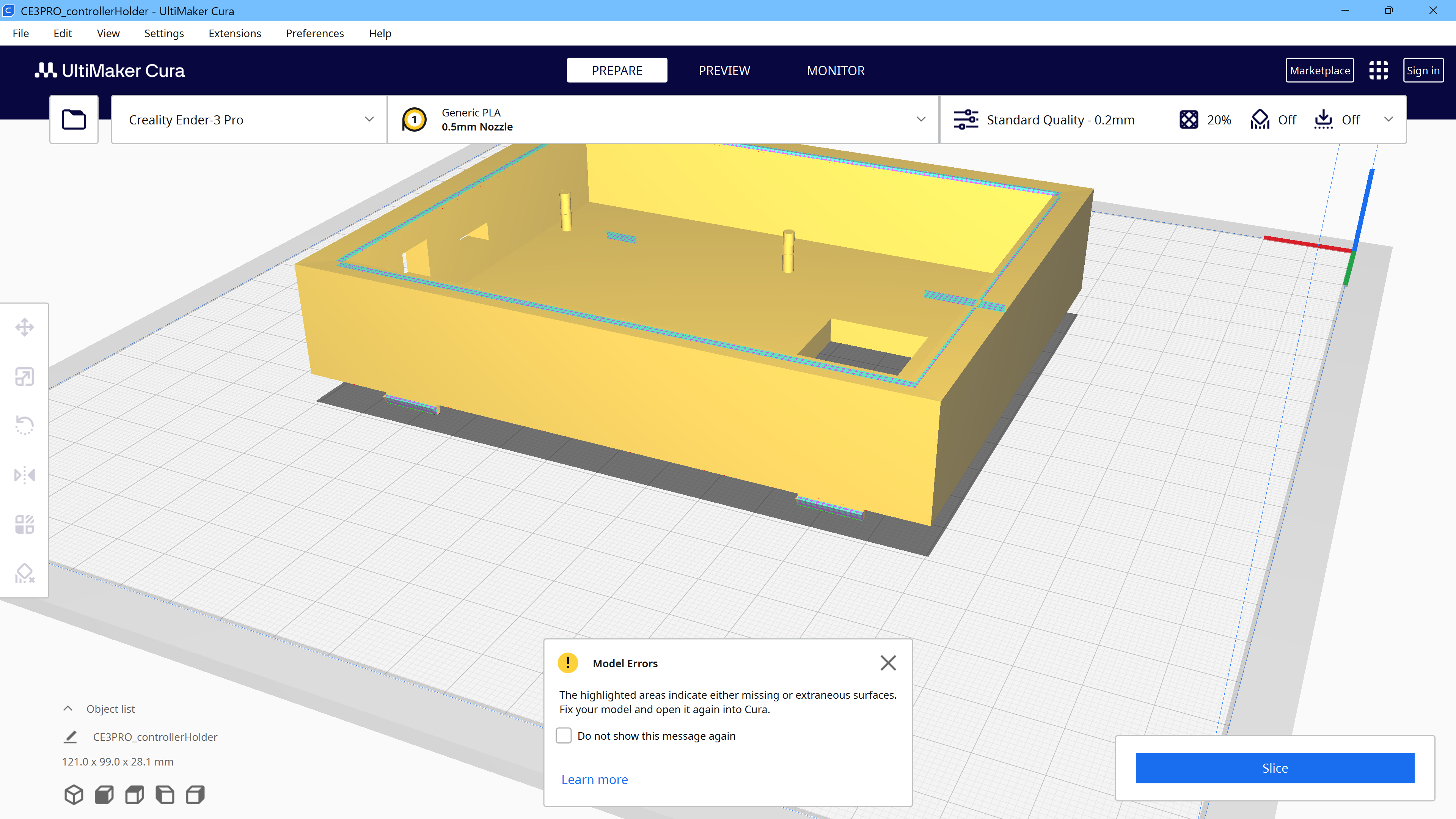 この記事を作った動機 Blender と Cura を使って、なんか印刷しようとしていたところ、つくったモデルが思うようにスライスできないことが分かったので、その対処方法について自分用に記録をする。 調べてみてもすぐにははっきりとしたことはわからず、全部のモデルの整合性に問題があるケースという意味では、全然網羅できてないと思うが、最終的に自分なりに心当たりのある部分を当ってみた感じにはなった。 Cura 上での挙動 問題があるとき モデルに問題があり、正常にスライスできない可能性があると、エラーメッセージが表示され、水色とピンク色であらわされる不適切な部分を示す領域がモデル上に表示される。 問題ながないとき 水色とピンク色であらわされる不適切な部分を示す領域が表示されることなく、エラーメッセージも出てこない。 ポイント 面が反転している 問題点の例 対応例 Blender 面を反転する に記録した。 余計な面が内部に隠れている 問題点の例 対応例 Edit モードで、単純に余計な面を選択して消す。 面が重なってつながっていない部分がある 問題点の例 対応例 重なっているだけでうまくつながっていない面を消し、作り直す。 面を削除する 面の作り直し 必要な辺や点を選択してから、Fキーを押すことで面を新たに作成する。 面を作り直して、全体的に整合性が取れた様子 参考にしたサイトとか Why am I getting “Your model has missing or extraneous surfaces” popups in Ultimaker Cura? https://support.makerbot.com/s/article/1633018228456 (2025年11月7日) Missing or extraneous surfaces warning in Cura : r/3Dprinting https://www.reddit.com/r/3Dprinting/comments/n6ff1w/missing_or_extraneous_surfaces_warning_in_cura/ (2025年11月7日) Flip Normals (inverted faces) – Blender Knowledgebase https://www.katsbits.com/codex/flip-normals/ (2025年11月7日) How do I flip the normal on this polygon? : r/blender https://www.reddit.com/r/blender/comments/1fbcqwc/how_do_i_flip_the_normal_on_this_polygon/ (2025年11月7日)