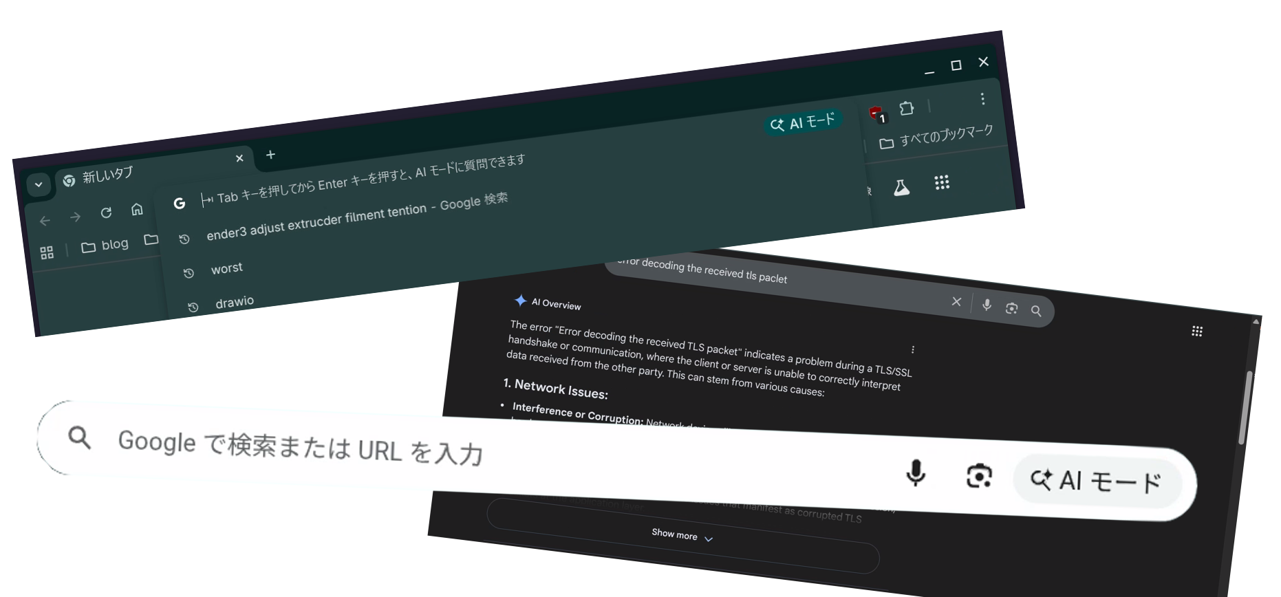 この記事を作った動機 Google が正規の手順で無効にできないようにして強制的に、AI モード や AI Overview なるものを押し付けてくるので、無効化する方法についてまとめておきたい。 無効化手順 AIモード 無効化 Google Chrome の検索バーの問題の様子 chrome://flagsを開く AI モード に関連する項目を全部disabledにする 問題が解消された状態 ...
